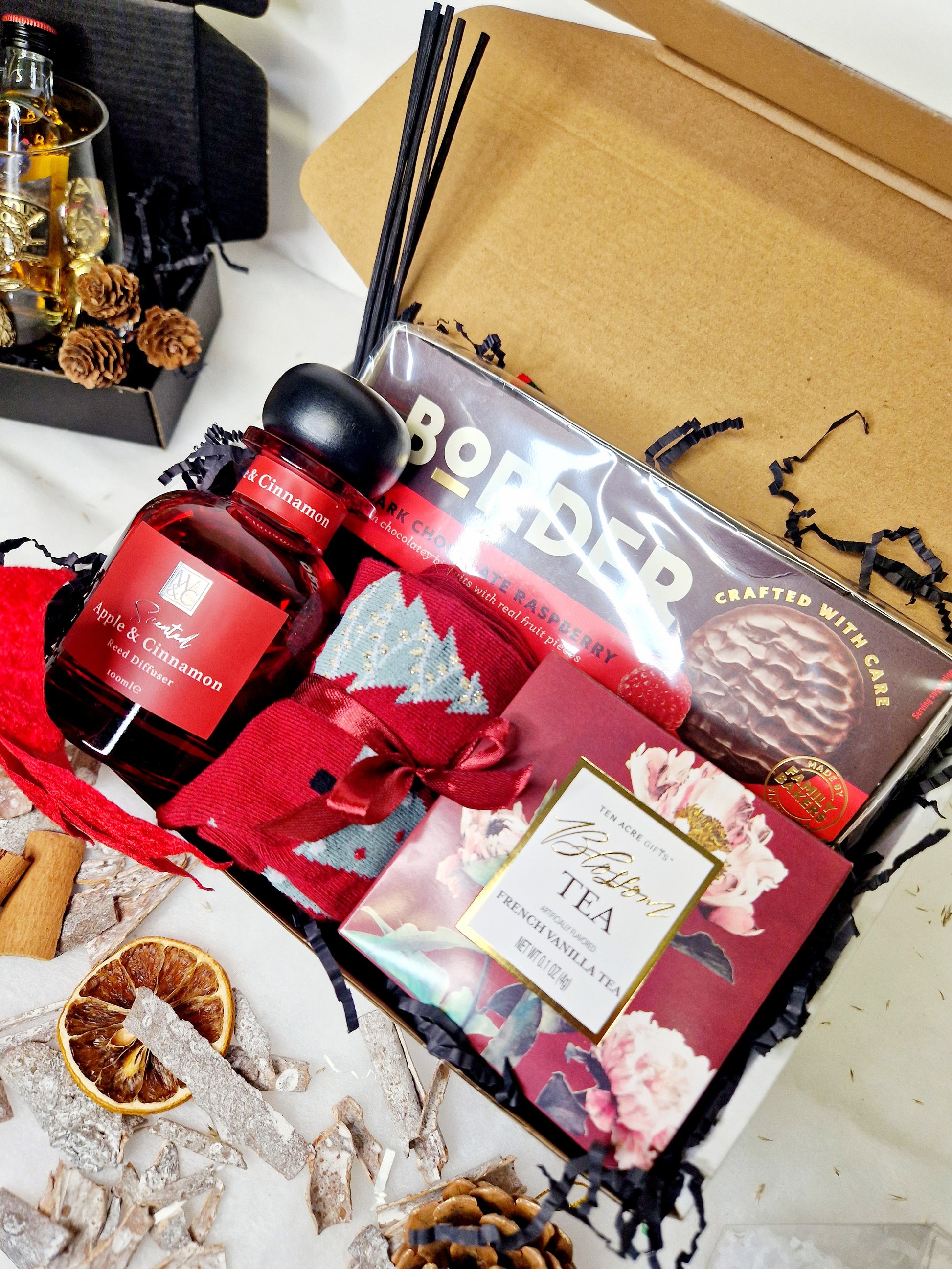 This delightful hamper is packed with the finest collection of delicious treats and hot and cold drinks. Our 4 flavours cater to various palates: from gingerbread lovers to simple vanilla/lemon enthusiasts, health-conscious fruit fanatics, and those with spicy, warm hearts.